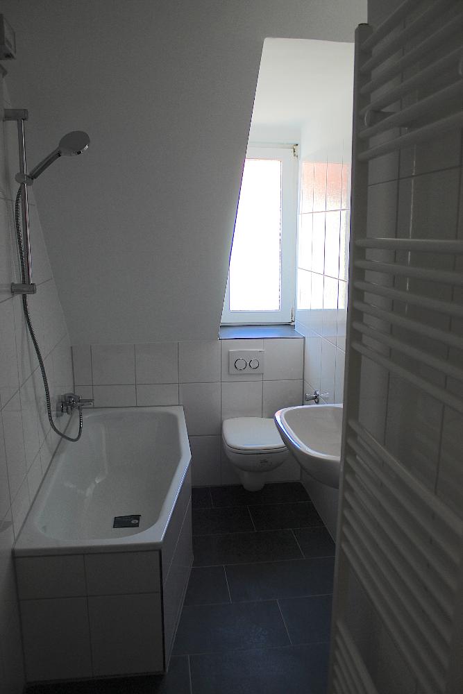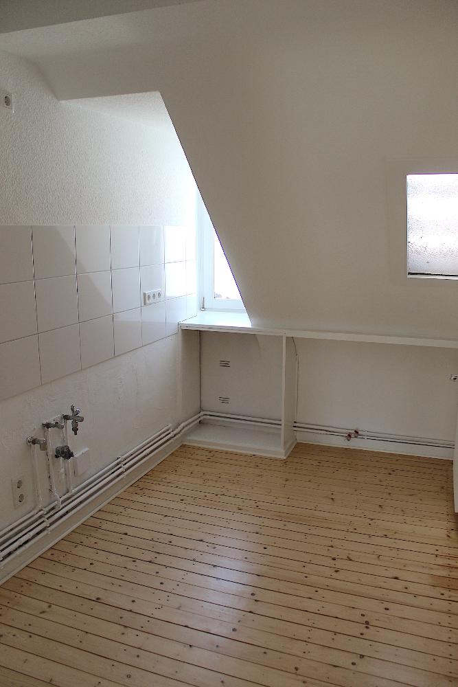 *** Anfragen zum Exposé oder zu Besichtigungsterminen bitte ausschließlich per Email! Vielen Dank für Ihr Verständnis! ***Die 3 Zimmer-Wohnung liegt im 4. OG eines gepflegten Mehrfamilienhauses und wurde im Jahr 2026 saniert. Die straßenseitigen Räume (Wannenbad, Küche und Zimmer 1 - siehe Skizze) verfügen über Dachschrägen (siehe Bilder). Sie verfügt über ein Wohnzimmer, 2 Schlafzimmer, eine Küche mit Strom- oder Gasherdanschluss (vermieterseits ohne EBK), ein modernes Wannenbad mit Fenster, einen hof-/gartenseitigen Balkon und einen Flur. Ein Kellerraum wird zur Verfügung gestellt. Sämtliche Wohnräume, der Flur und die Küche sind mit frisch abgeschliffenen Holzdielenböden ausgestattet. Das Bad verfügt über große dunkle Bodenfliesen und die Wände sind weiß gefliest. Die Fenster sind aus weißem Kunststoff mit Doppelverglasung. Die Wohnung wird über eine Gasetagenheizung beheizt, die sich in der Küche befindet. Die Kosten für Strom & Gas sind vom Mieter direkt an den Versorger zu zahlen. Mit dem Versorger ist auf eigenen Namen und auf eigene Rechnung ein entsprechender Versorgungsvertrag abzuschließen. Gleiches gilt bei Bedarf für Kabelfernsehen. Die Angabe der monatlichen Betriebskosten in Höhe von 105,- € gilt für eine Person. Bei mehr Personen kommen pro weiterer Person rd. 15,00 € monatlich an Nebenkostenvorauszahlungen hinzu. Die Treppenhausreinigung ist nicht in den Nebenkostenvorauszahlungen enthalten und muss von den Mietern selbst organisiert und durchgeführt werden.